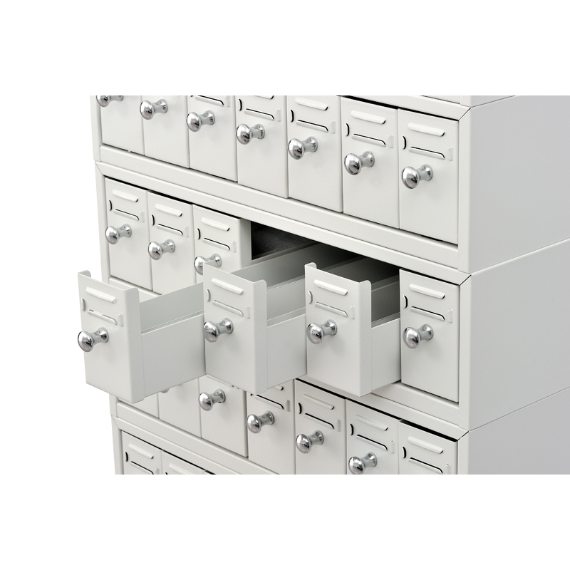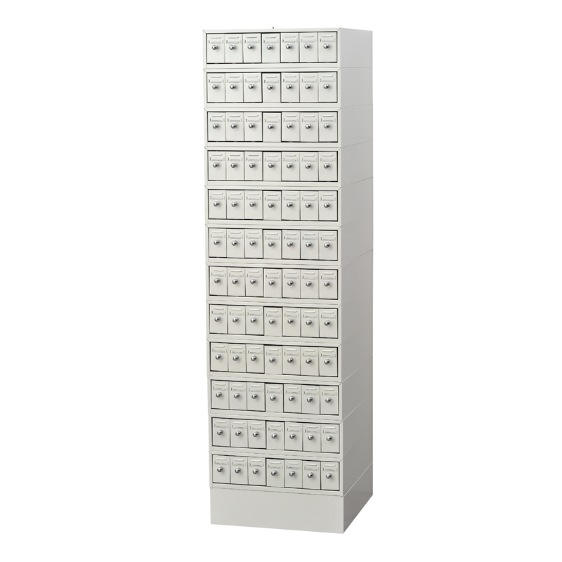底座采用寶鋼SPCC1.2冷軋鋼板,箱體0.8冷軋鋼板,抽屜0.8冷軋鋼板,八十四個抽(十二節(jié),每節(jié)七抽,加一底座,每只抽屜可存放標準玻璃切片900張,每組存放切片75600張以上),玻片專用抽進口ABS滑道抽屜內(nèi)置暗鎖,防滑功能.拉手采用ABS鍍鉻,抽屜內(nèi)分隔六個空間,便于存檔。柜體表面處理脫脂除油、表調(diào)、鋅系磷化、鈍化、粉末噴涂。