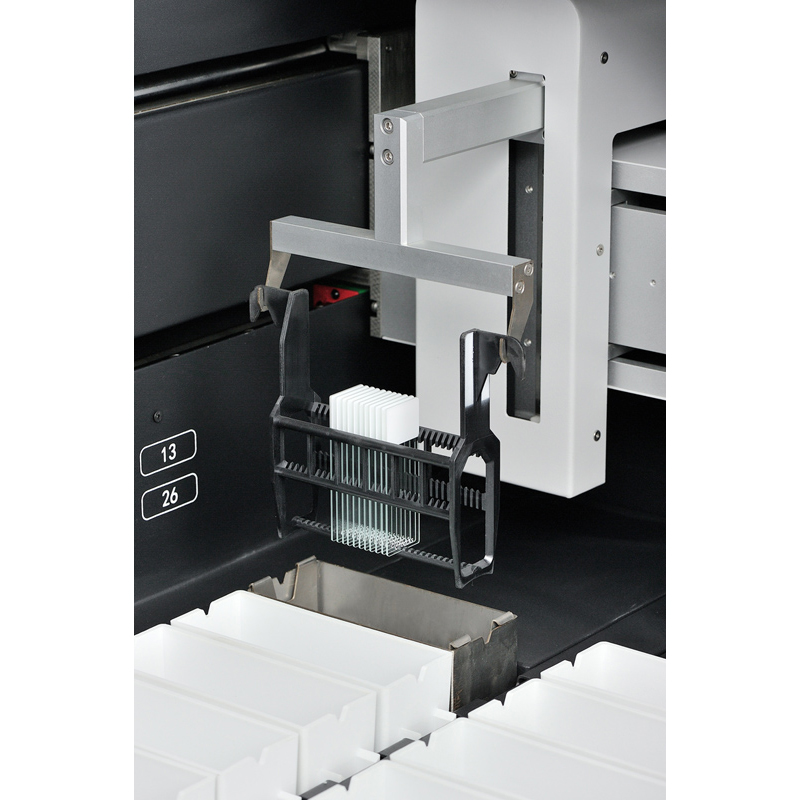 染色站點數(shù)量 總站點數(shù)26個,(含試劑站點17個,水洗站點4個,烤缸1個,加載/卸載站點≥4個(智能配置,其中2個缸可設(shè)置為試劑缸) |